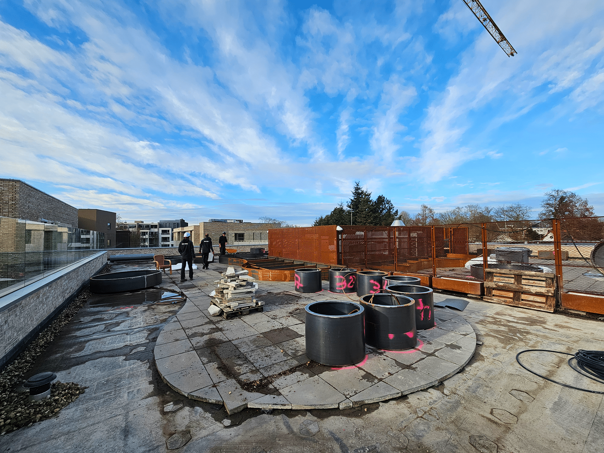 De werkzaamheden startten met het volledig leegruimen van de bestaande daken. Vervolgens is een geautomatiseerd beregeningssysteem aangelegd, afgestemd op de waterbehoeften van de beplanting. Hiermee wordt een duurzame en efficiënte watervoorziening gegarandeerd, essentieel voor gezonde beplanting op hoogte.